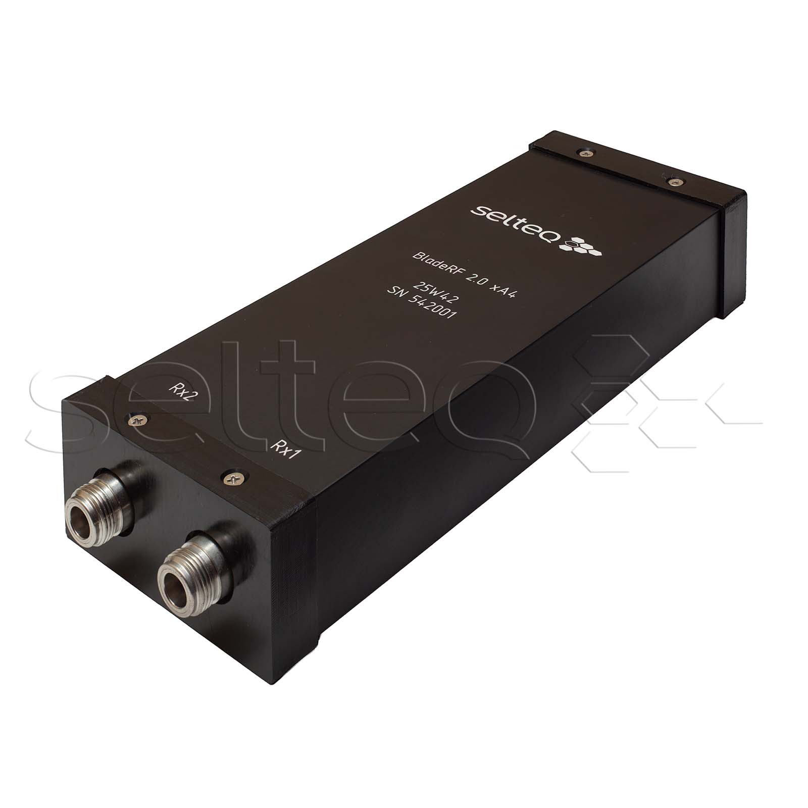Корпус підходить для bladeRF 2.0 micro. У комплект входить два панельних розʼєми N гніздо, що підʼєднані до портів RX1 та RX2.